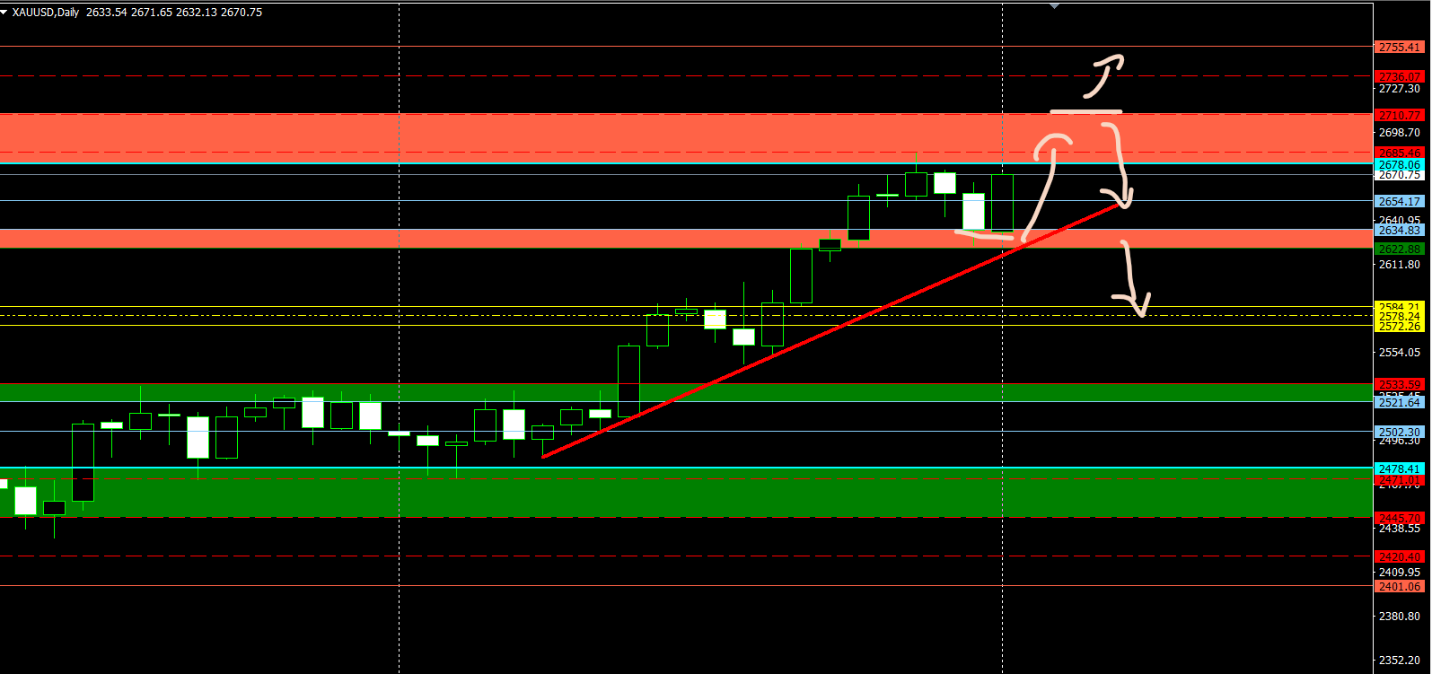 طالعتنا وكالات الانباء اليوم ان ايران سوف تقوم بتوجيه ضربه صاروخيه مركزه بهدف الرد على اسرائيل فى اغتيال الامين العام لحزب الله السيد : حسن نصر الله . و بناء عن هذه الاخبار ارتفع الذهب بمستيويات مرتفعه . وصلت لمستوى 2671 .