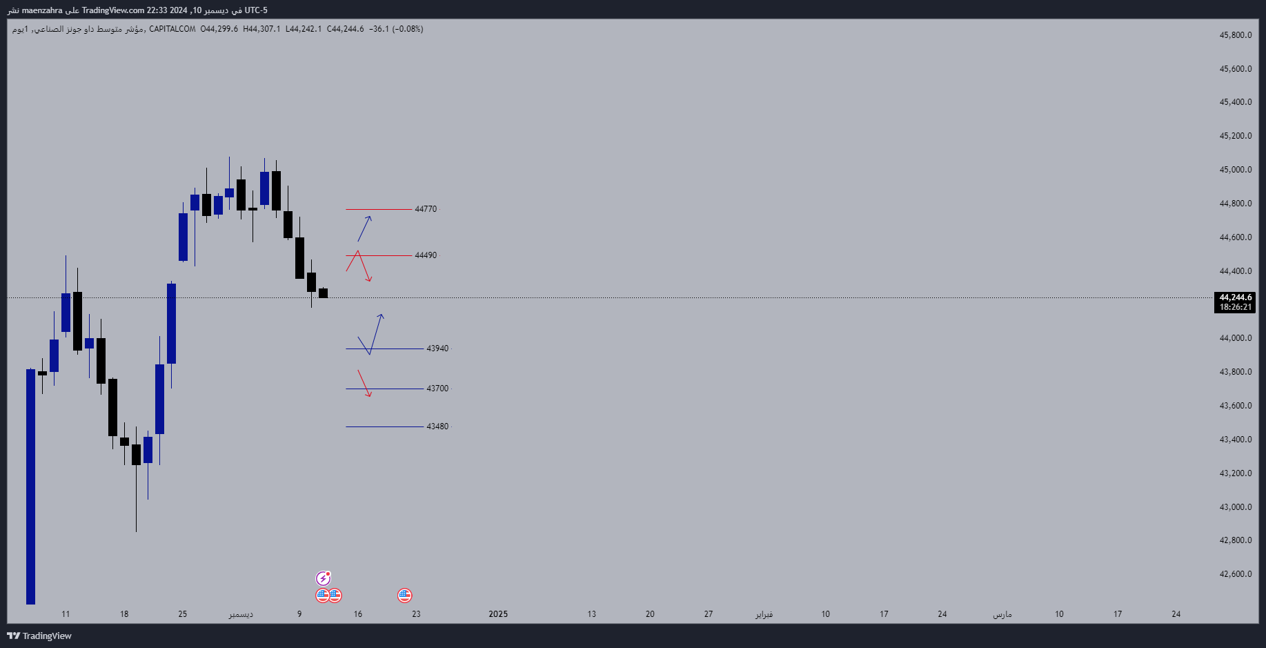 شخصياً بفضل شوف الداو عند مستويات 43940 اذا هو حابب يستكمل بالصعود لقمة أعلى