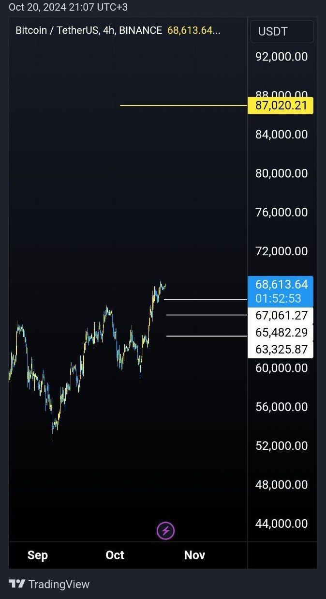 الحفاظ على منطقه 68000 والاغلاق اعلاها بشمعة يومية مؤهل لكسر القمه باذن الله