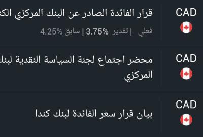 قرار الفائدة الصادر عن البنك المركزي الكندي