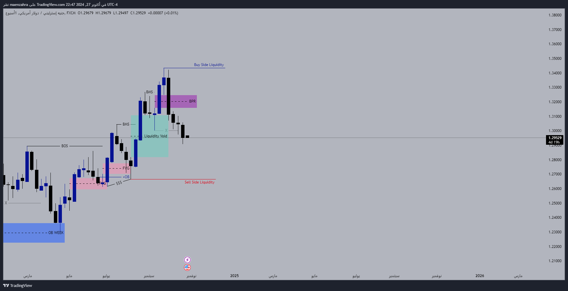 بعد ما فشل الباوند دولار بتوفير تأكيدات شرائية متل ما ذكرنا بالتحديث السابق تم كسر المنطقة واستهداف منطقة أدنى وهالشي مترافق مع قوة بالدولار
