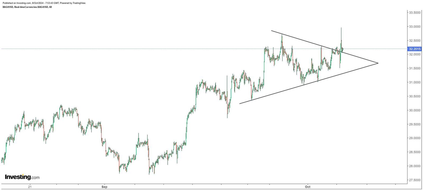ارتفع سعر الفضة بقوة يوم الجمعة الماضي ليتجاوز هدفنا الأول عند 32.50$ ويصل لعتبات الهدف الثاني عند 33.00$ وننصح باستئناف التداولات الإيجابية لتحقيق مكاسب جديدة خلال الجلسات القادمة بانتظار اختبار 33.00$ من جديد.