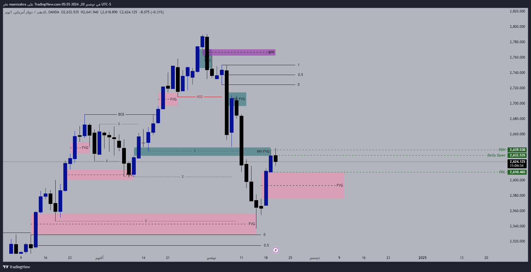 يومياً لا زال الذهب هابط لكن الفريمات صغيرة غيرت هيكليتها