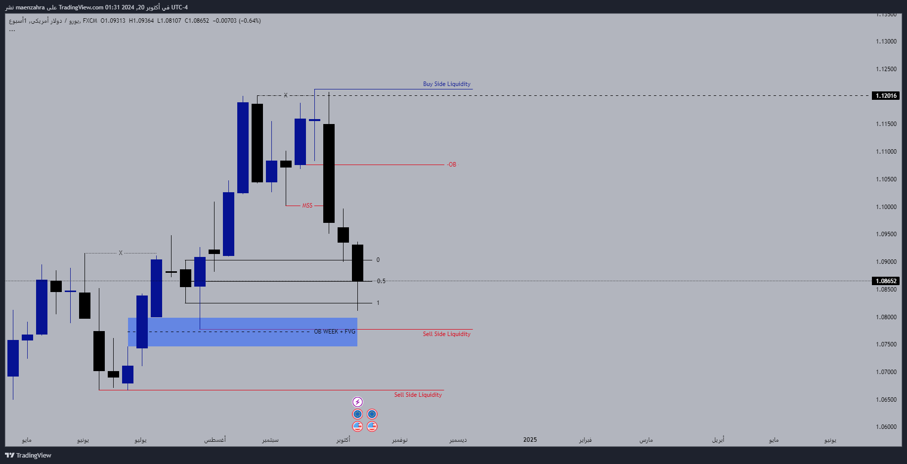 السيناريو التاني : هبوط لنوصل للسيولة الموجودة عند سعر 1.07774 نمسح السيولة ونفعل اوردر بشكل رسمي ومن بعدها عودة للاوردر بلوك البيعي عند سعر 1.10762