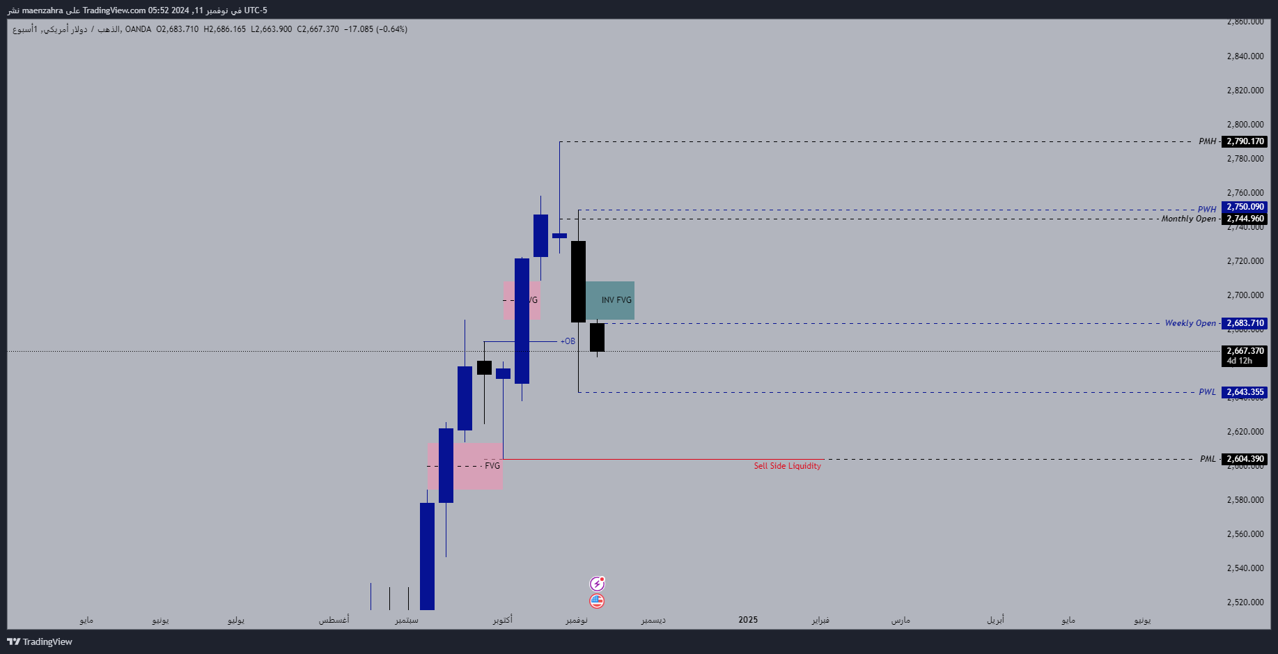 لحتى نقدر نقول انو الدهب سلبي ع الفريم الاسبوعي نحنا بحاجة لكسر منطقة 2600 ولثبات ادناه بشمعة اسبوعية